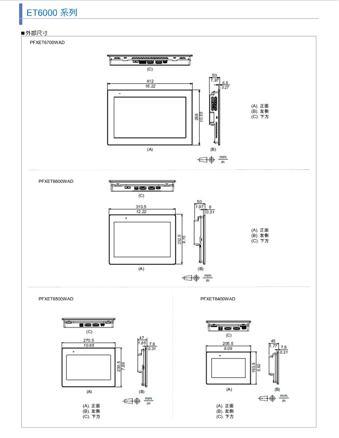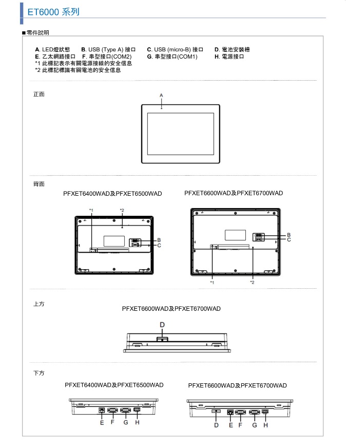 Pro-face普羅菲司-ET6000陽春型_彩色人機介面觸控螢幕_顯示器