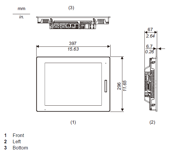 | 介面設備 | USB(A型) | 符合 USB 2.0 (Type A) x 1 電源電壓:5 Vdc ±5 % 輸出電流:500 mA 通訊距離:5 m [16.4 ft.] 將顯示模組與電源盒搭配使用時,每種類型的 USB 裝置只能連接一個, 例如一個 U 碟、一條傳輸線或一個條碼讀取器。 如果連接多個相同類型的設備,則只有第一個設備可以工作。 |